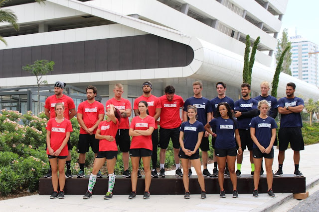 At the Challenge, T.J. announces that the teams will be playing "Hand Me Down." The objective is to use ropes to travel from one beam to the other, while suspended 650 feet in the air! Whichever team gets the most team members across wins. Aneesa quits without even stepping on because of the heights, getting the Blue Team off to a bad start. However, they stay neck and neck with the Red Team for a little bit. It's a really difficult challenge for some, since it involves upper body strength, and a breeze for others. The Red Team ends up winning yet again! It's a difficult challenge, though because it doesn't really matter if you win or not. If your bloodline goes home, you go home, so it's really about being able to form alliances outside of the challenge. No one's truly safe. This day is a guy's elimination, so both teams have to vote someone from the Blue Team to compete in The Pit. IT.J. gives the cast until the next morning to make their decisions.
